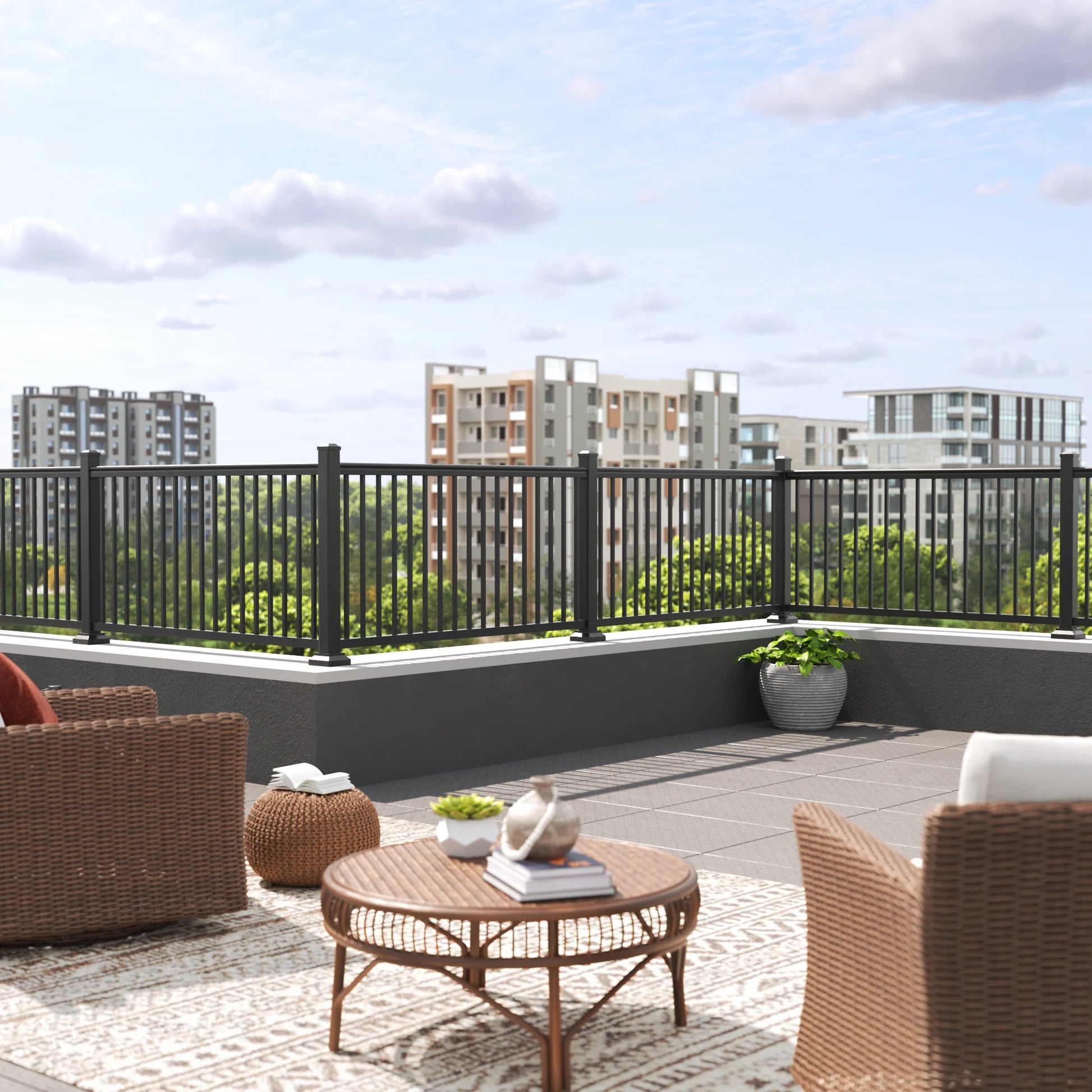 - Heavy Duty: Aluminum picket railing built for demanding commercial use and a sophisticated residential aesthetic.