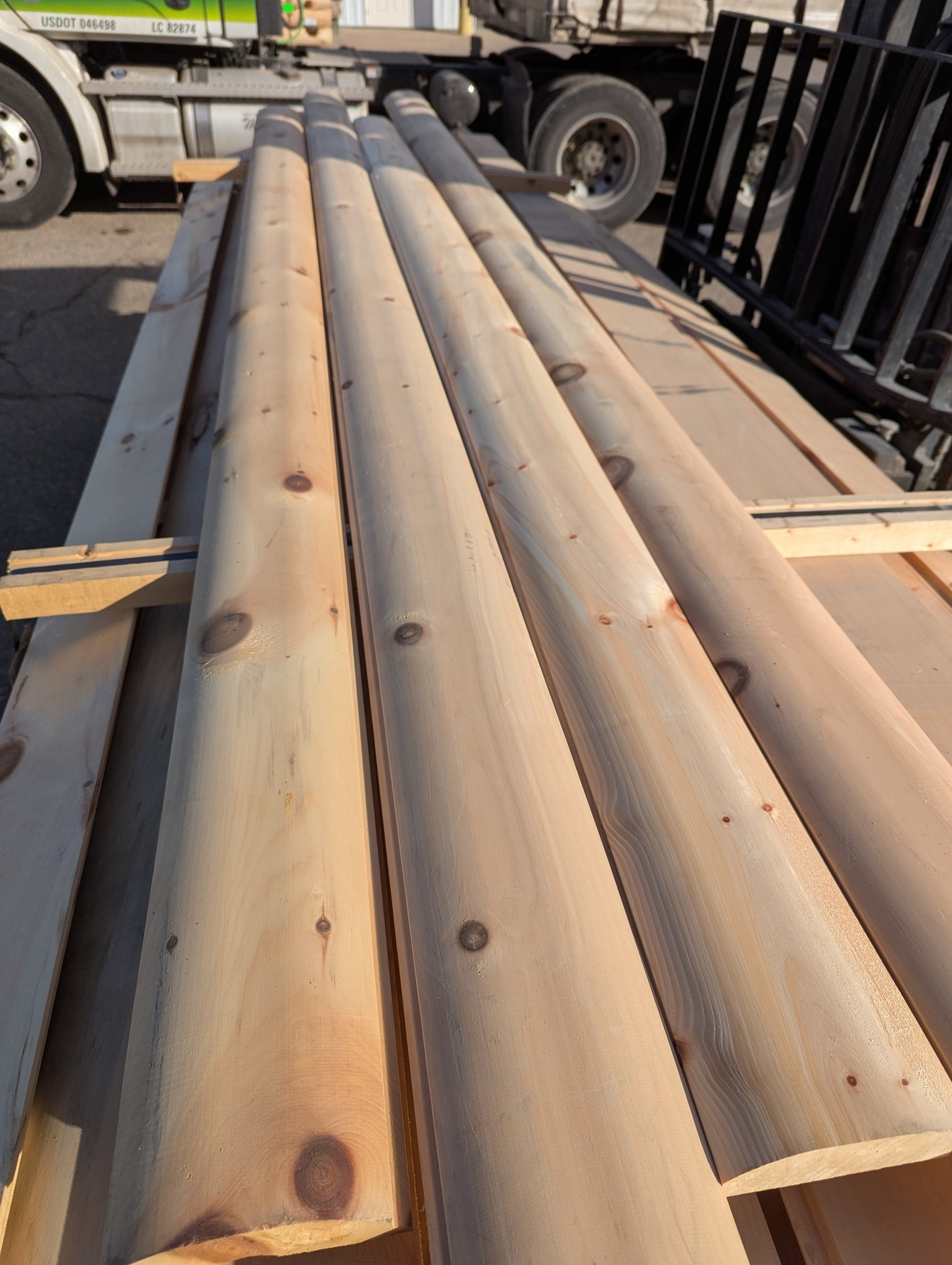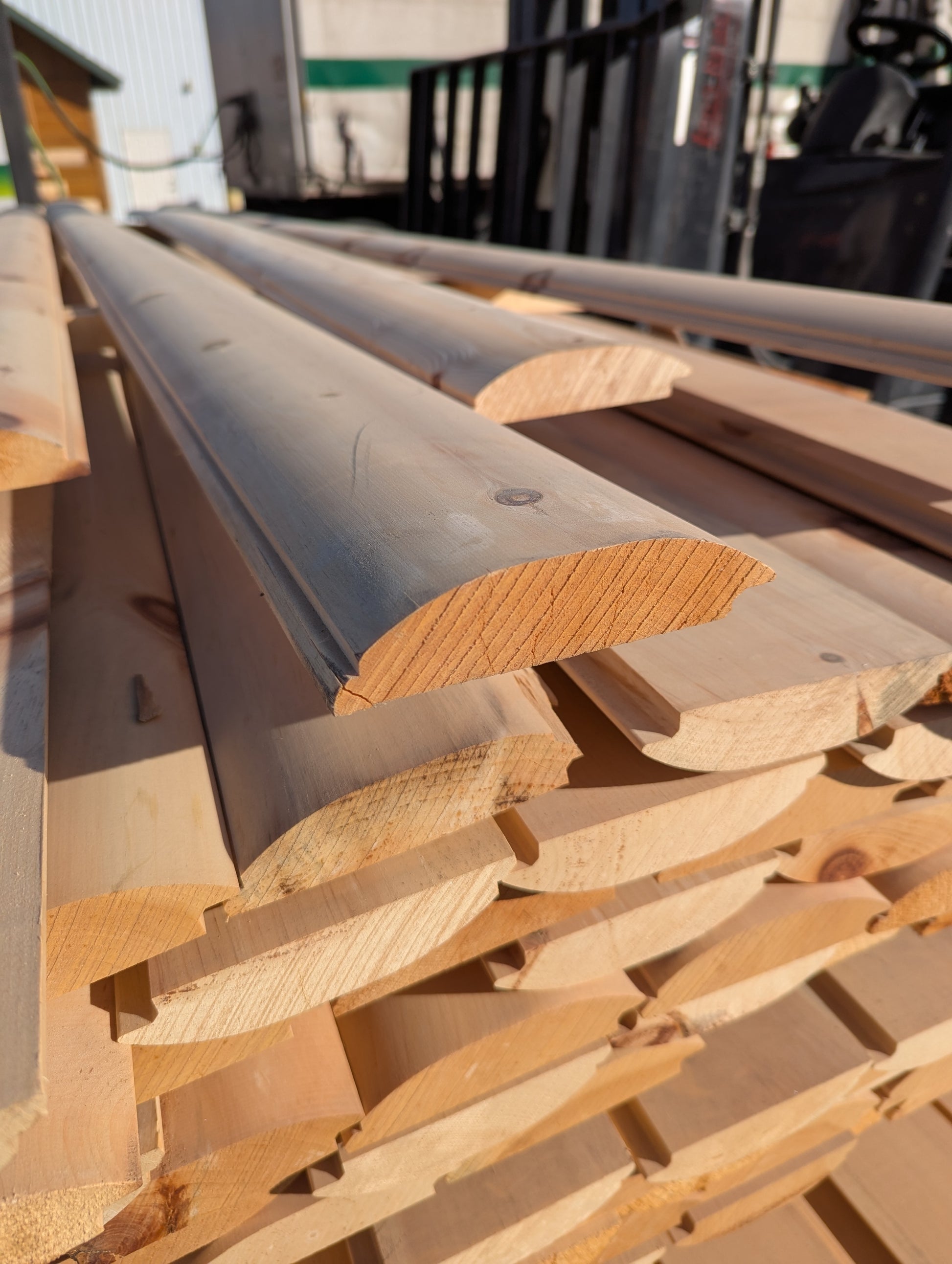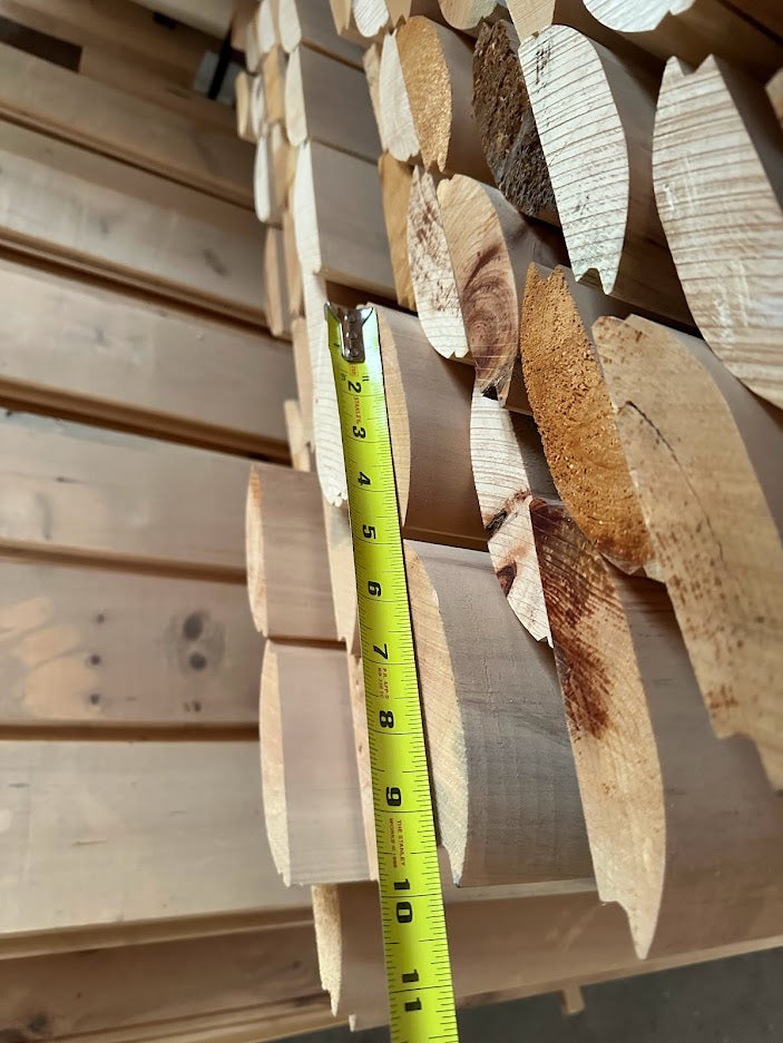 We have a limited amount (about 1300 lineal feet) of our 2x6 "Old #12" quarter log siding available. This is a cheap and easy way to get that log cabin look. Take advantage of this deal while supplies last!